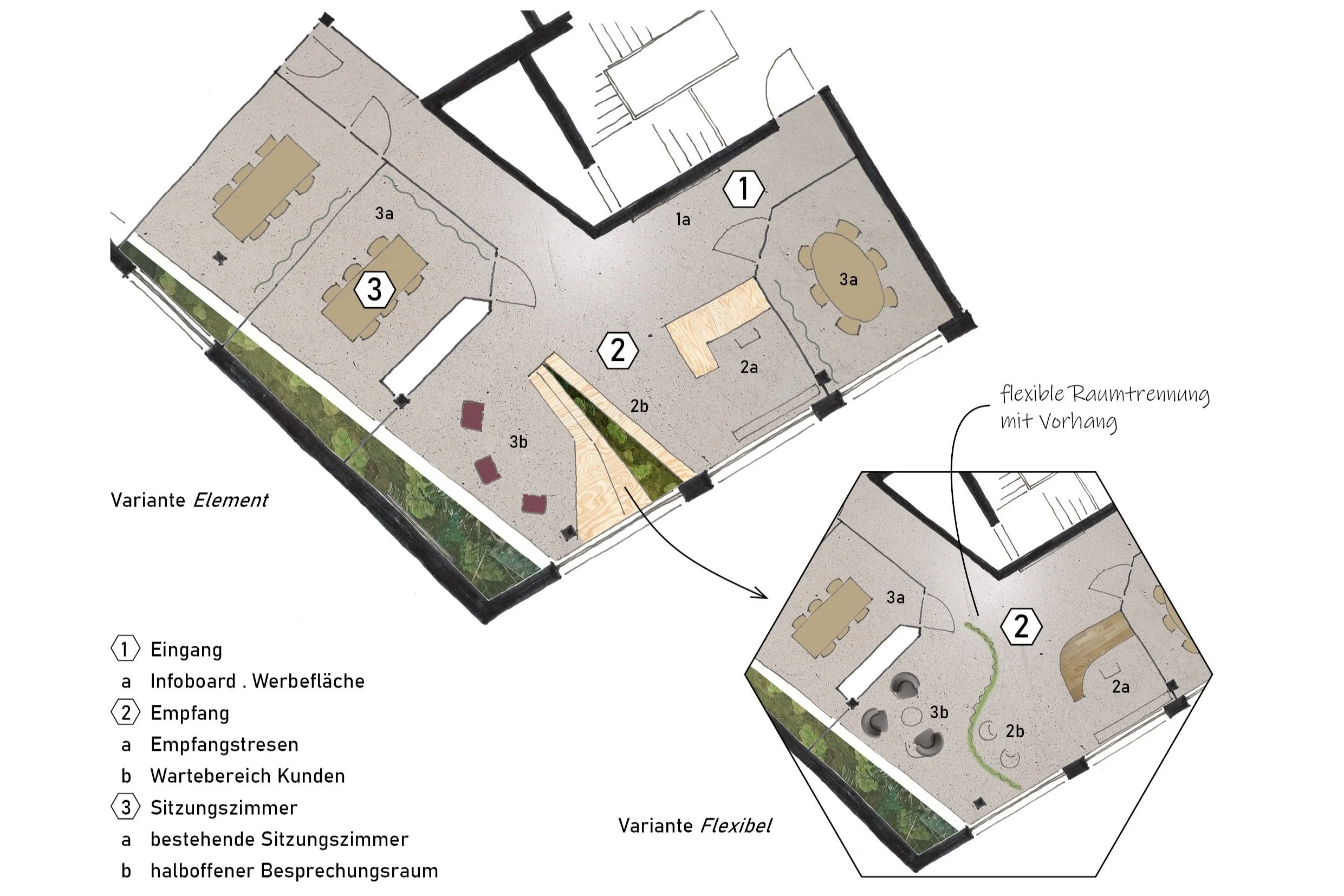 Um diese Anforderungen erfüllen zu können, wurde das Atelier Kipfer beauftragt, Lösungen in verschiedenen Eingriffstiefen und Budgetklassen zu finden.